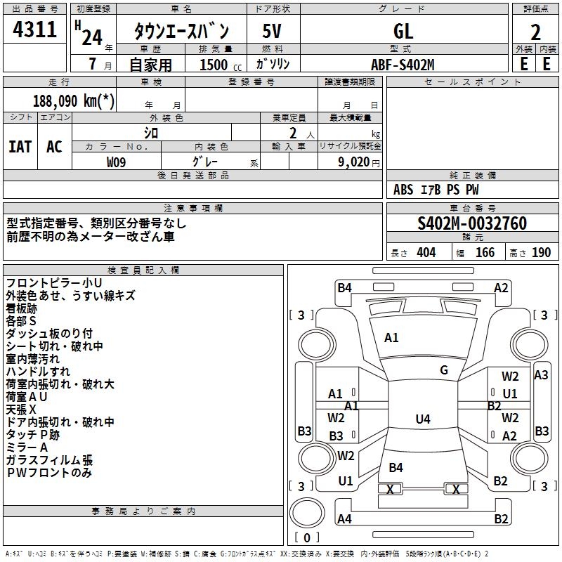 TOYOTA TOWN ACE VAN GL - лот 4311