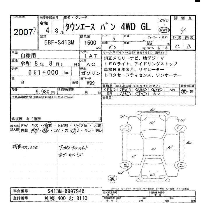 TOYOTA TOWN ACE VAN 4WD GL - лот 2007