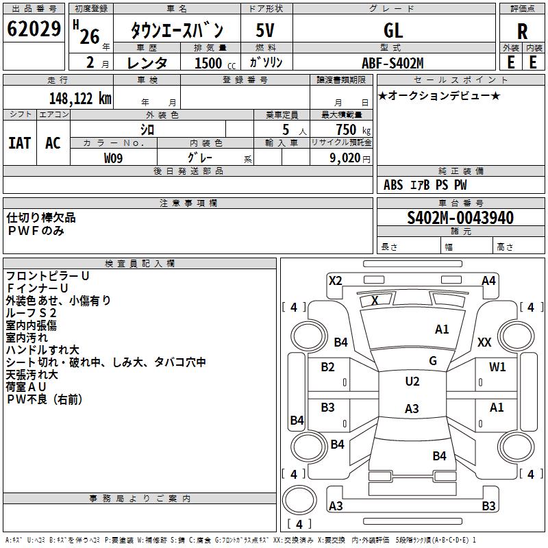 TOYOTA TOWN ACE VAN GL - лот 62029