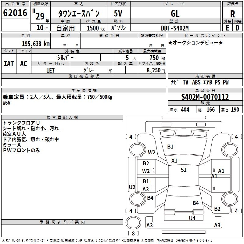TOYOTA TOWN ACE VAN GL - лот 62016