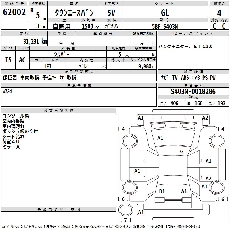 TOYOTA TOWN ACE VAN GL - лот 62002