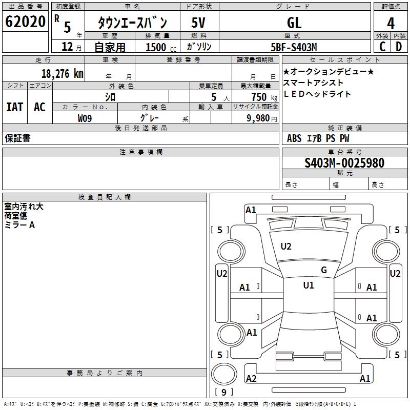 TOYOTA TOWN ACE VAN GL - лот 62020