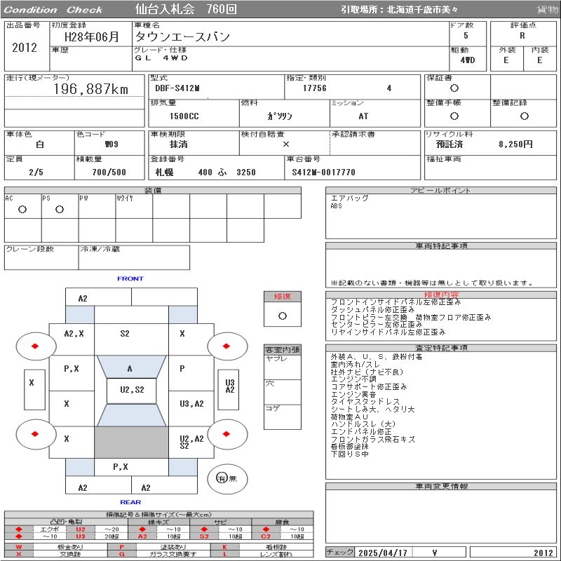 TOYOTA TOWN ACE VAN GL 4WD - лот 2012