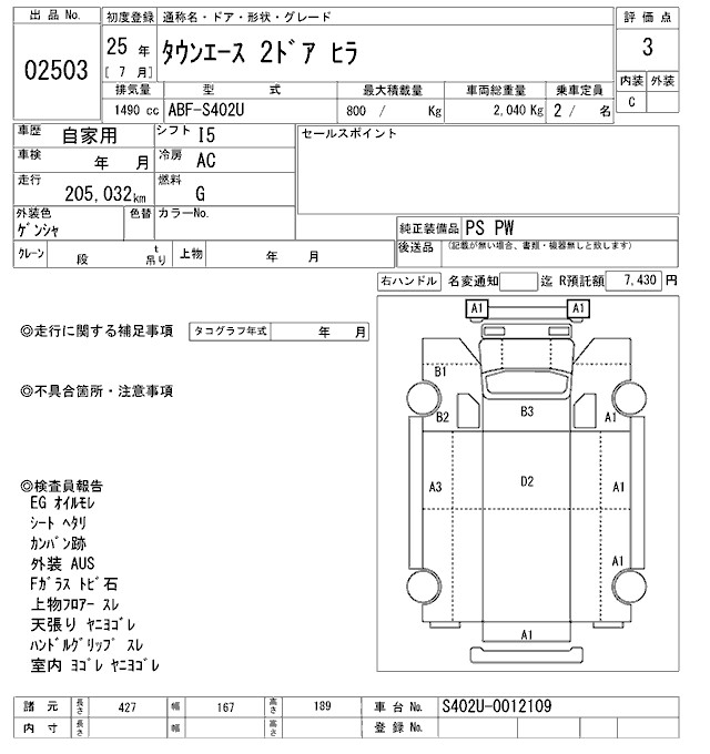 TOYOTA TOWN ACE COMMON - лот 2503
