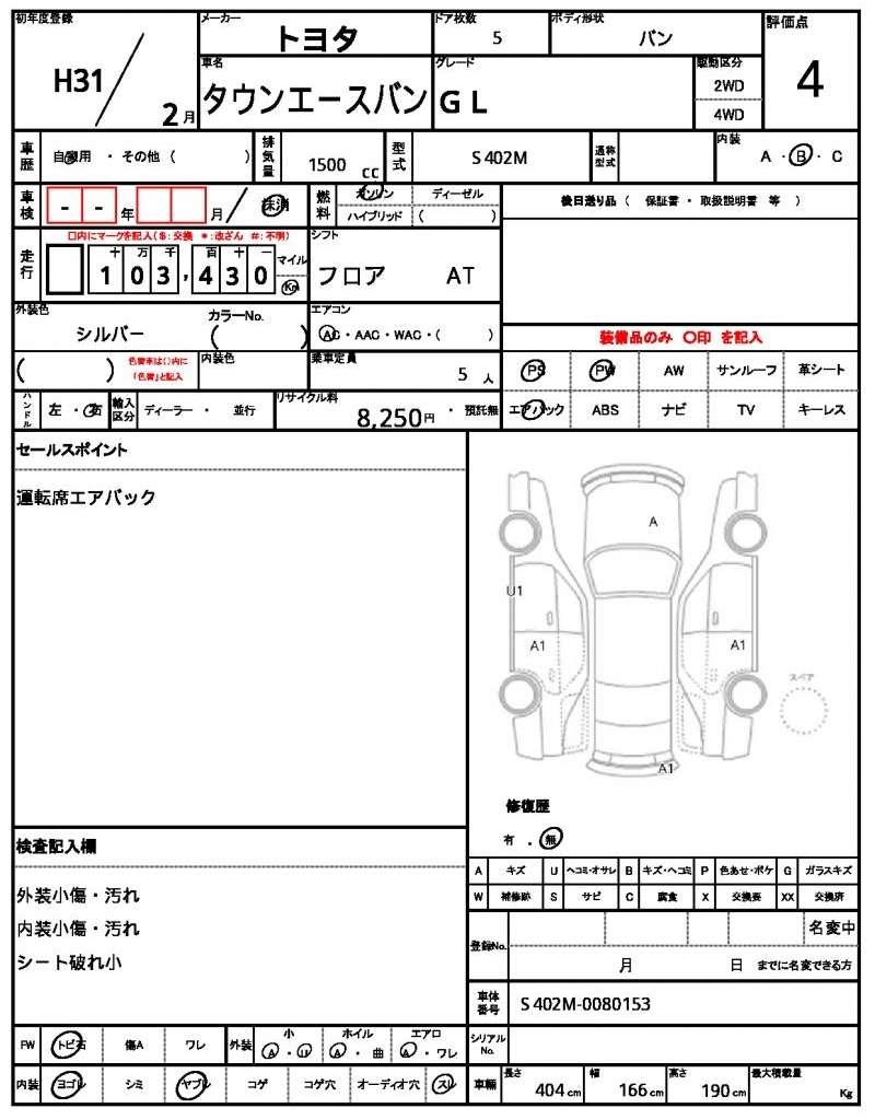 TOYOTA TOWN ACE VAN - лот 10043