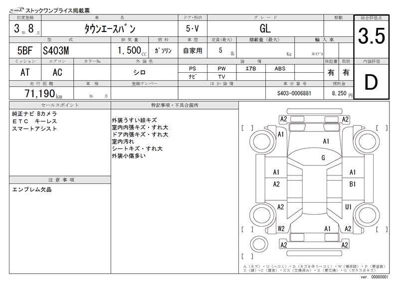 TOYOTA TOWN ACE VAN - лот 20365