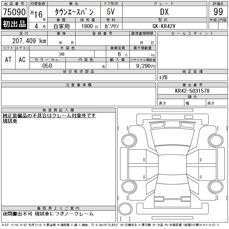 TOYOTA TOWN ACE VAN - лот 75090