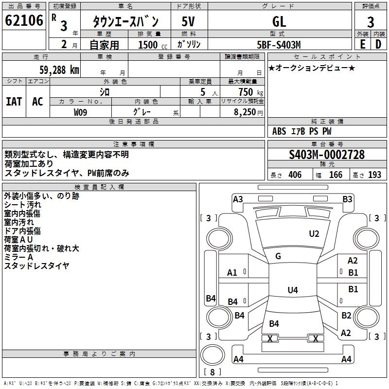 TOYOTA TOWN ACE VAN - лот 62106