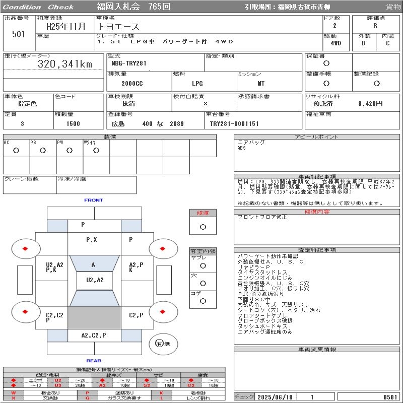 TOYOTA TOYOACE 1.5T LPG CAR WITH POWER GATE 4WD - лот 501