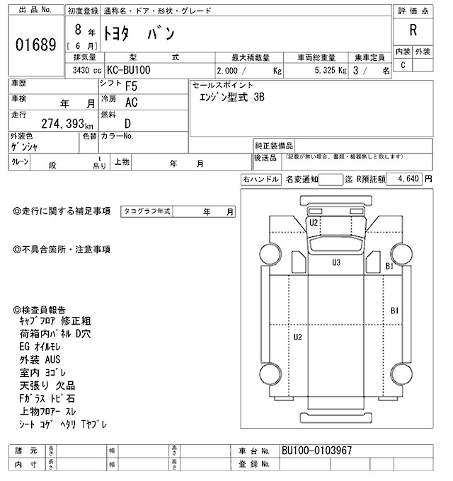 TOYOTA TOYOACE VAN - лот 1689