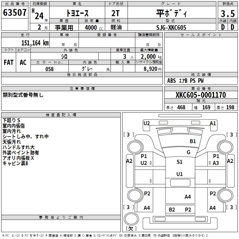 TOYOTA TOYOACE COMMON BODY - лот 63507