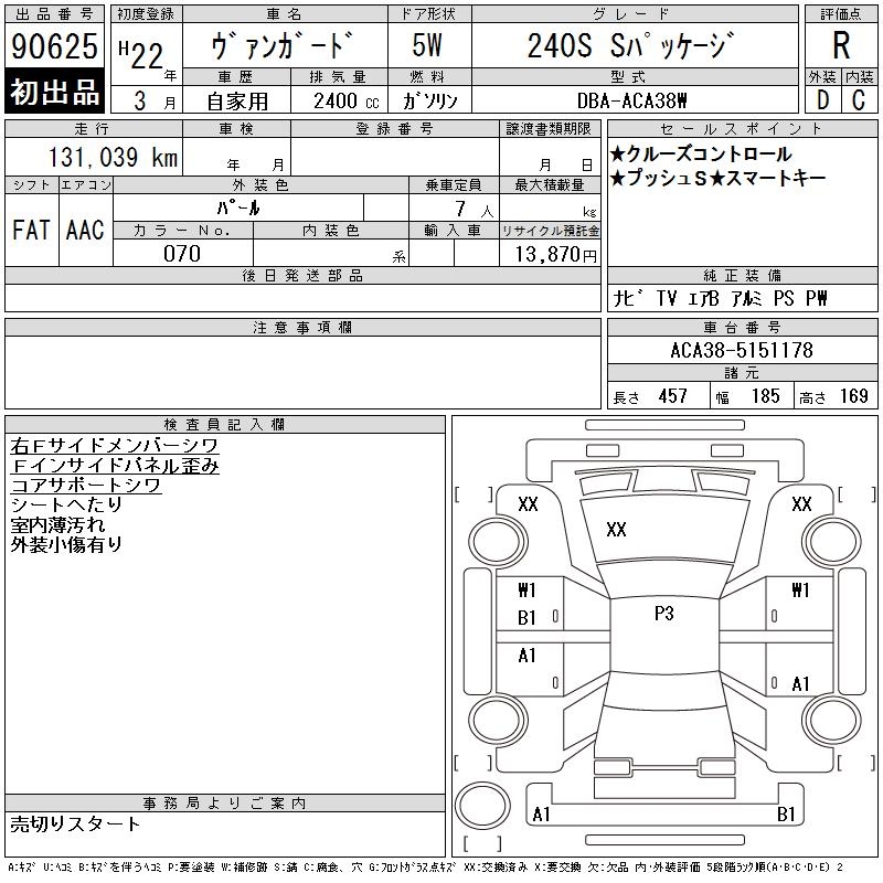 TOYOTA VANGUARD 240S S PACKAGE - лот 90625