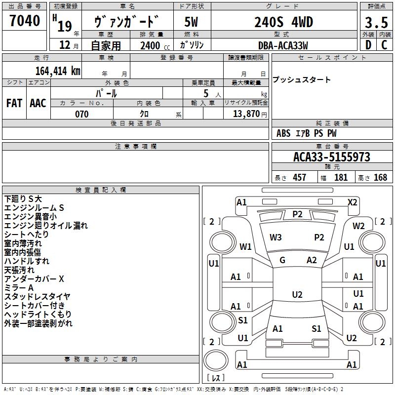 TOYOTA VANGUARD 240S 4WD - лот 7040