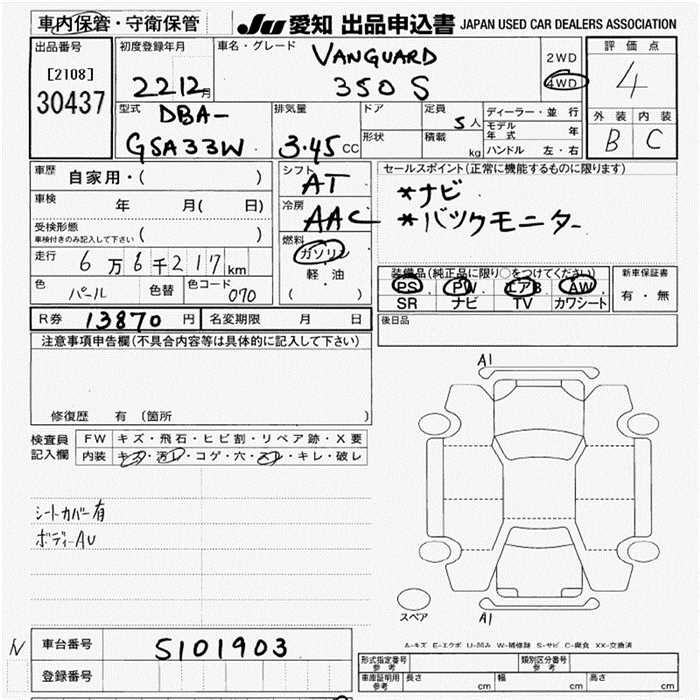 TOYOTA VANGUARD 350S 4WD - лот 30437