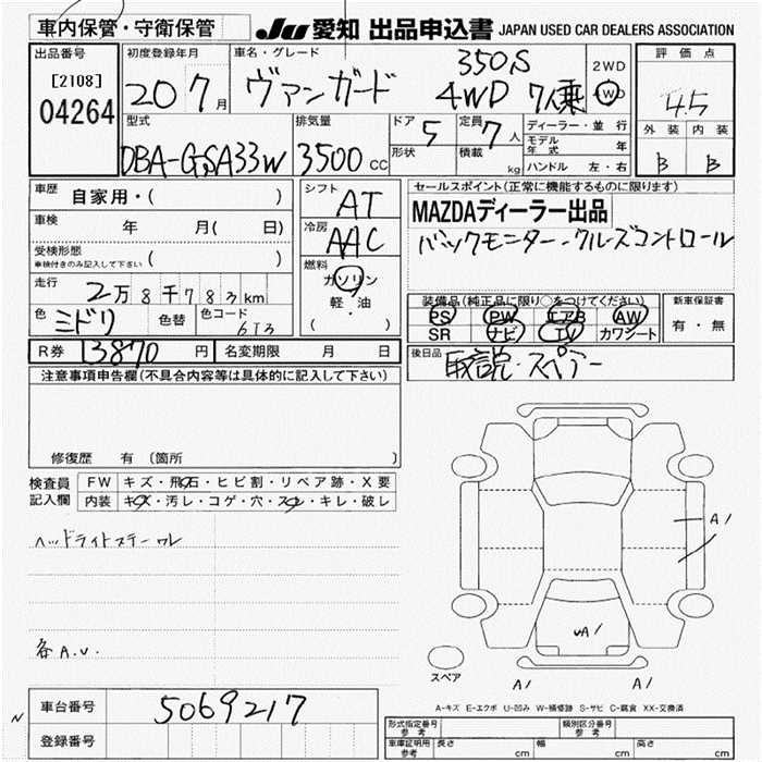 TOYOTA VANGUARD 350S 4WD - лот 4264