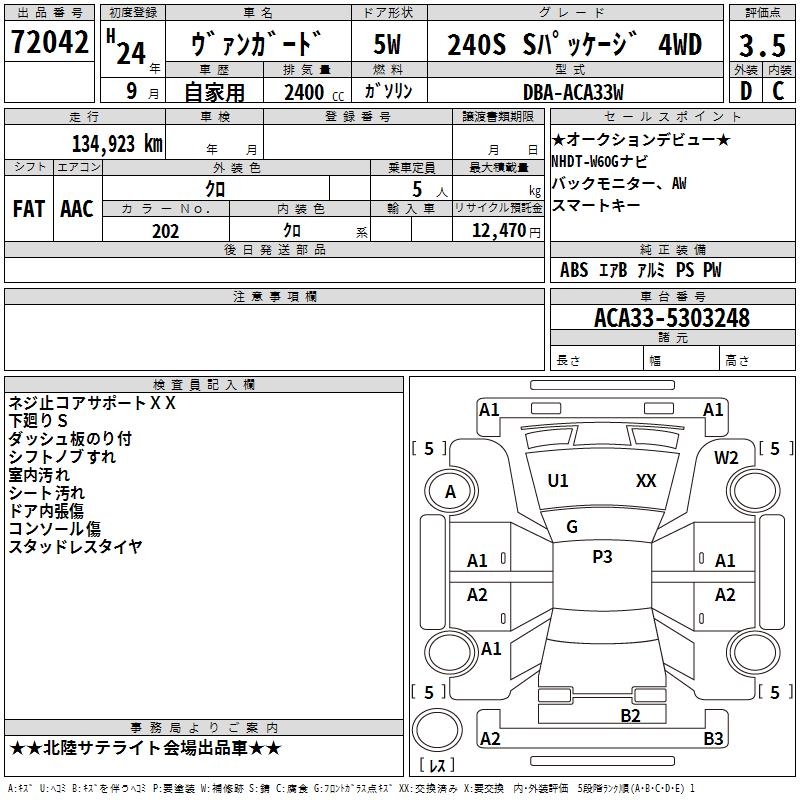 TOYOTA VANGUARD 240S S PACKAGE 4WD - лот 72042