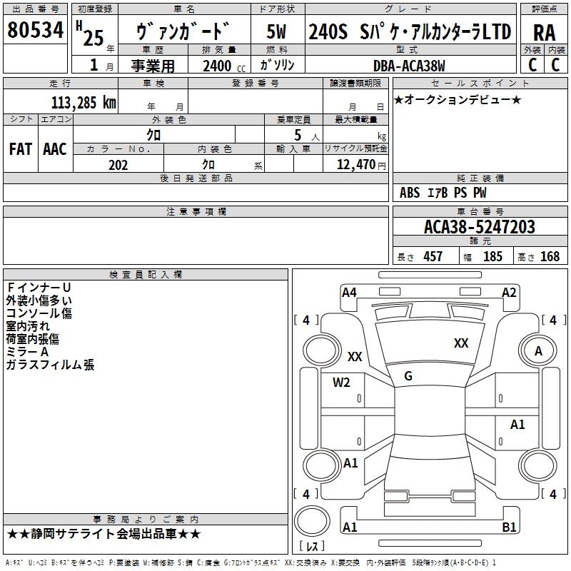 TOYOTA VANGUARD 240S S PACK * ALCANTARA LTD - лот 80534