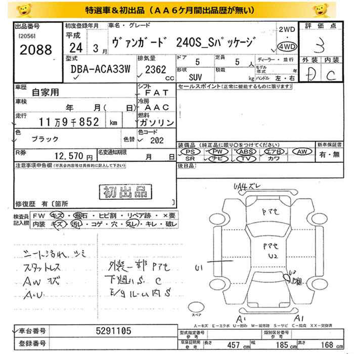 TOYOTA VANGUARD 4WD 240S S PACKAGE - лот 2088