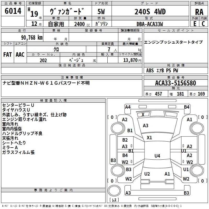 TOYOTA VANGUARD 240S 4WD - лот 6014