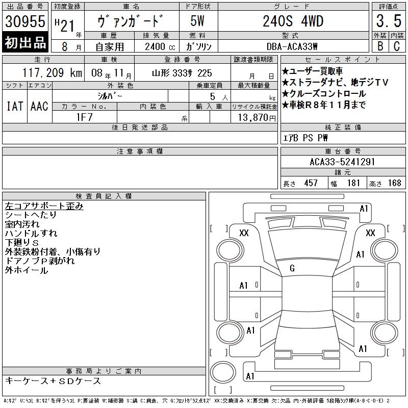 TOYOTA VANGUARD 240S 4WD - лот 30955