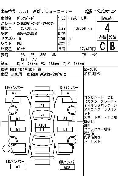 TOYOTA VANGUARD 240S S PACKAGE * ALCANTA - - лот 60331