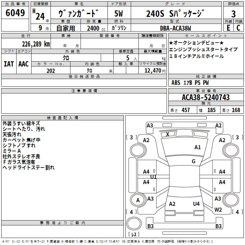 TOYOTA VANGUARD 240S S PACKAGE - лот 6049