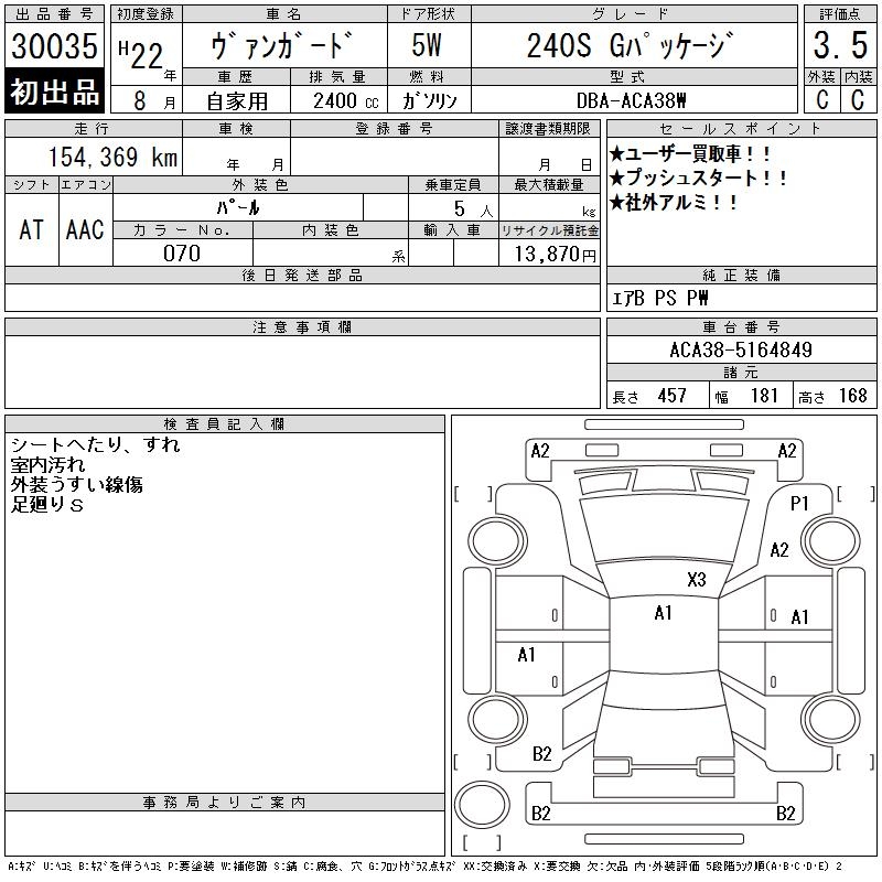 TOYOTA VANGUARD 240S G PACKAGE - лот 30035