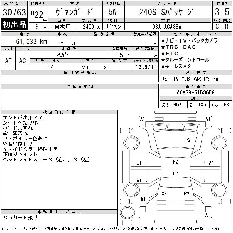 TOYOTA VANGUARD 240S S PACKAGE - лот 30763