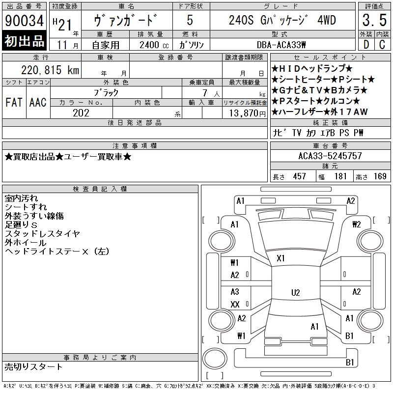 TOYOTA VANGUARD 240S G PACKAGE 4WD - лот 90034