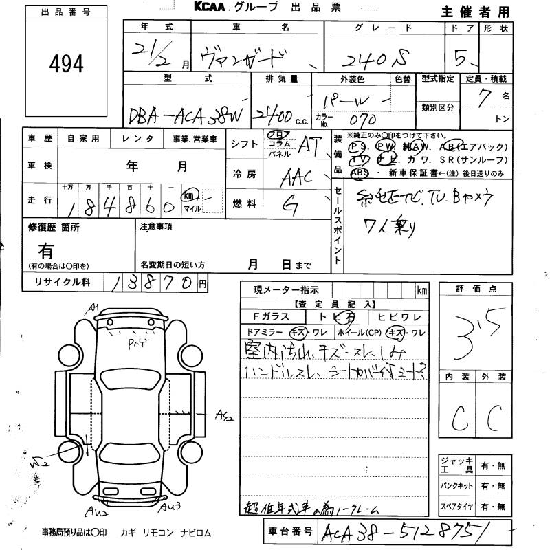 TOYOTA VANGUARD 240S - лот 494