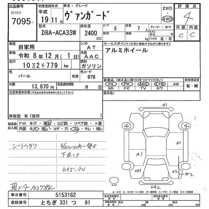 TOYOTA VANGUARD 4WD - лот 7095