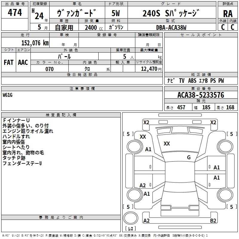TOYOTA VANGUARD 240S S PACKAGE - лот 474