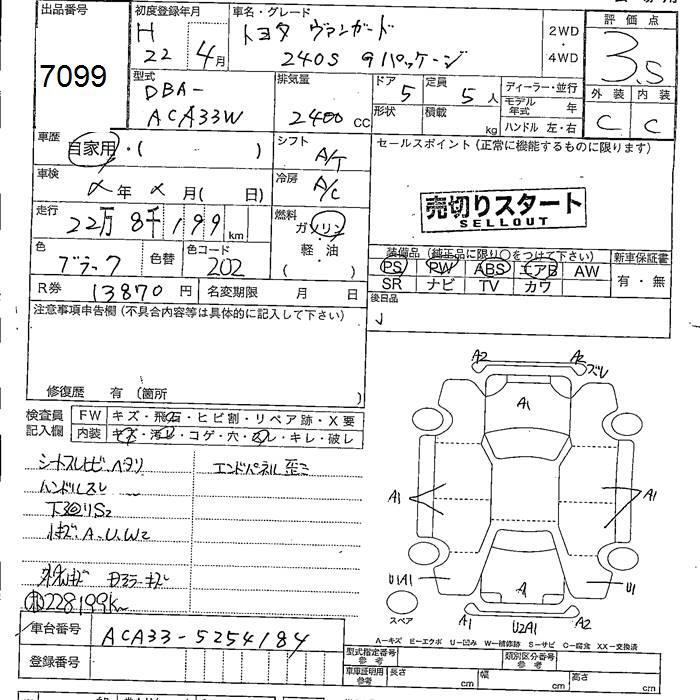 TOYOTA VANGUARD 4WD 240S G PACKAGE - лот 7099