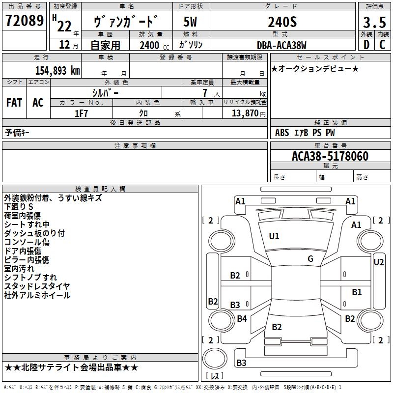 TOYOTA VANGUARD 240S - лот 72089