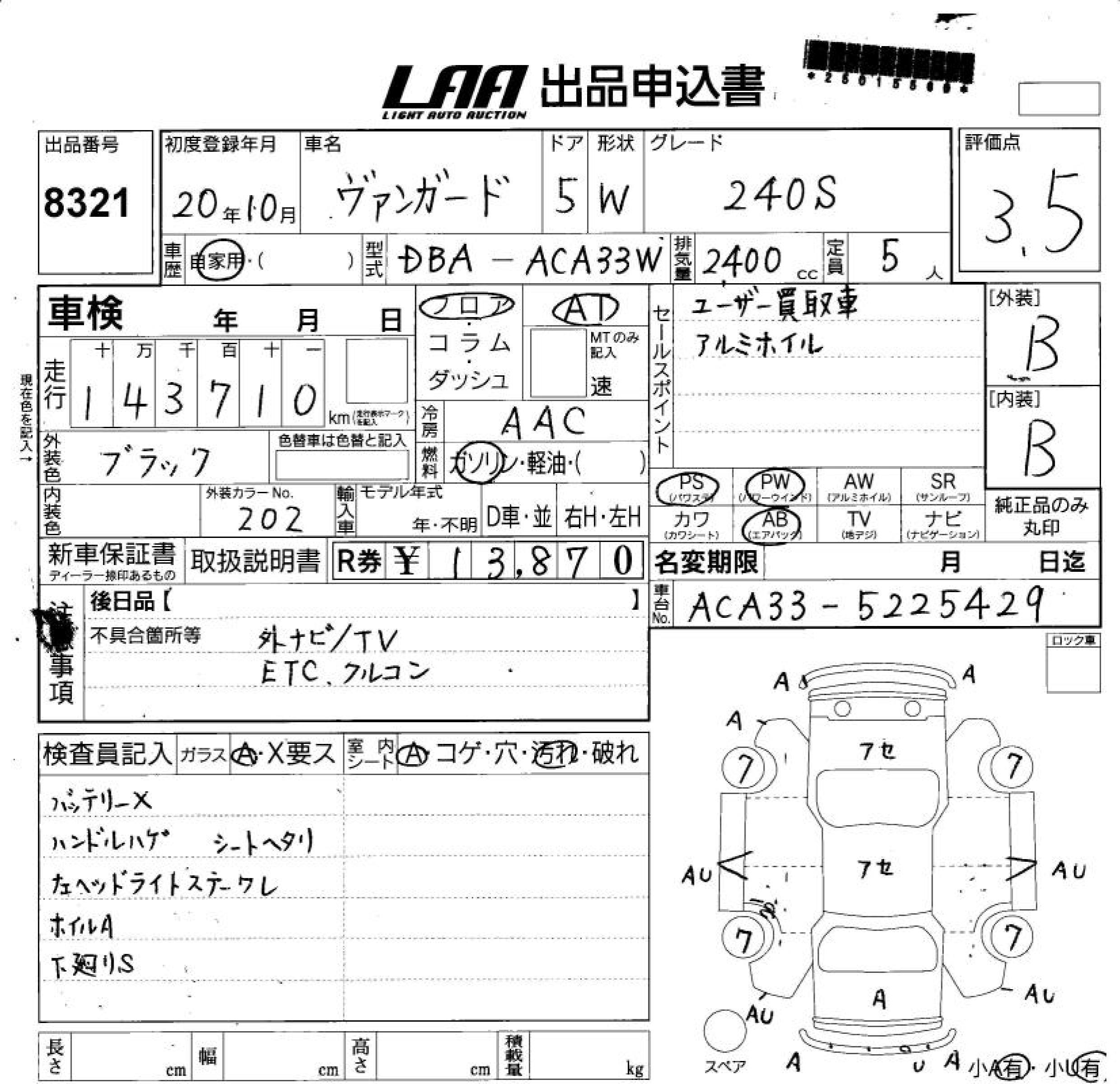 TOYOTA VANGUARD 240S - лот 8321
