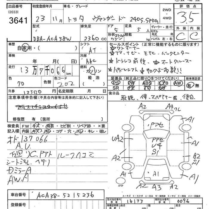TOYOTA VANGUARD 240S S PACKAGE - лот 3641