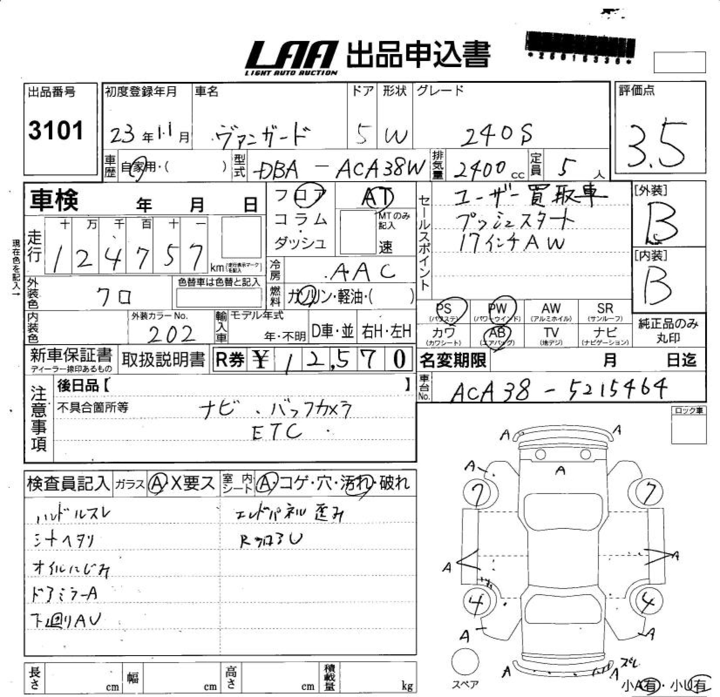 TOYOTA VANGUARD 240S - лот 3101