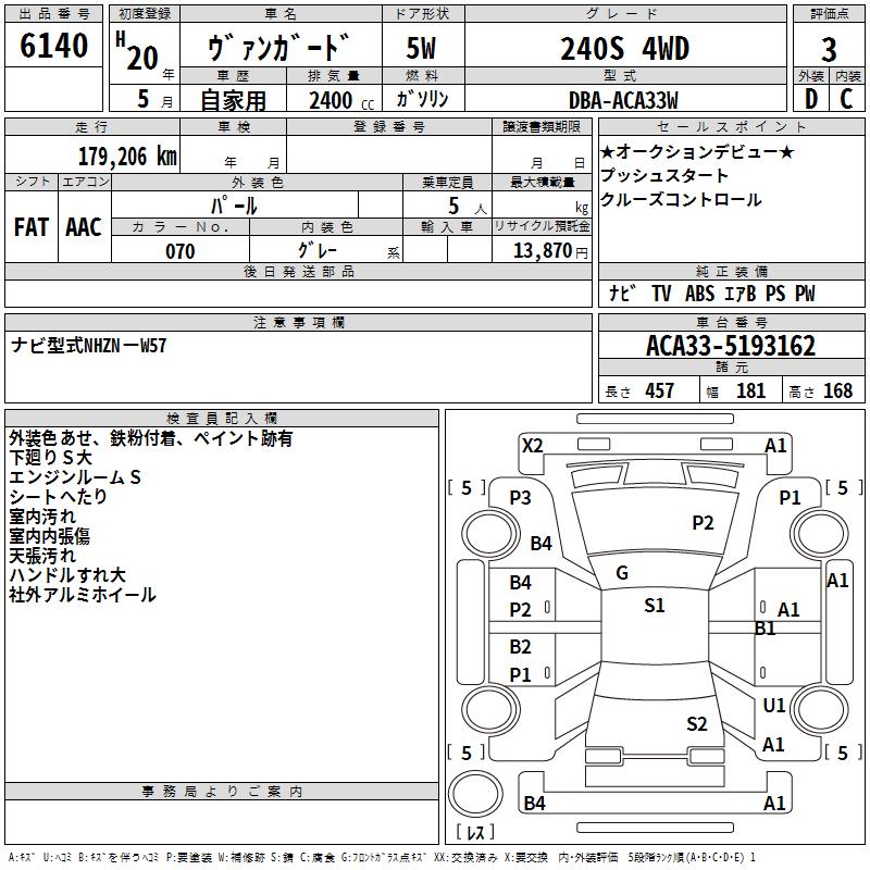 TOYOTA VANGUARD 240S 4WD - лот 6140