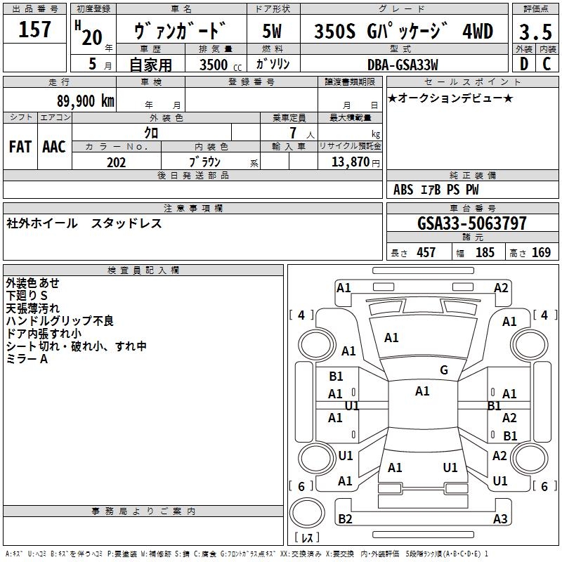 TOYOTA VANGUARD 350S G PACKAGE 4WD - лот 157