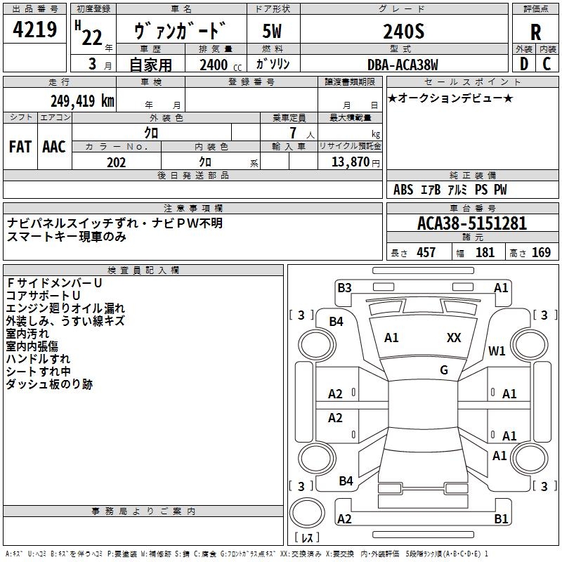 TOYOTA VANGUARD 240S - лот 4219