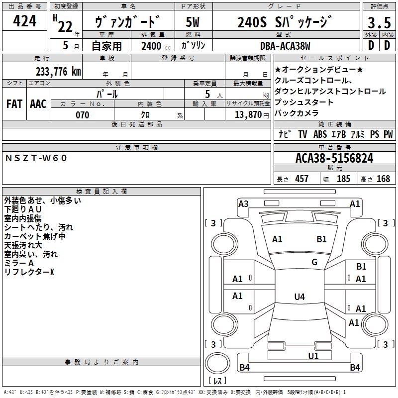 TOYOTA VANGUARD 240S S PACKAGE - лот 424