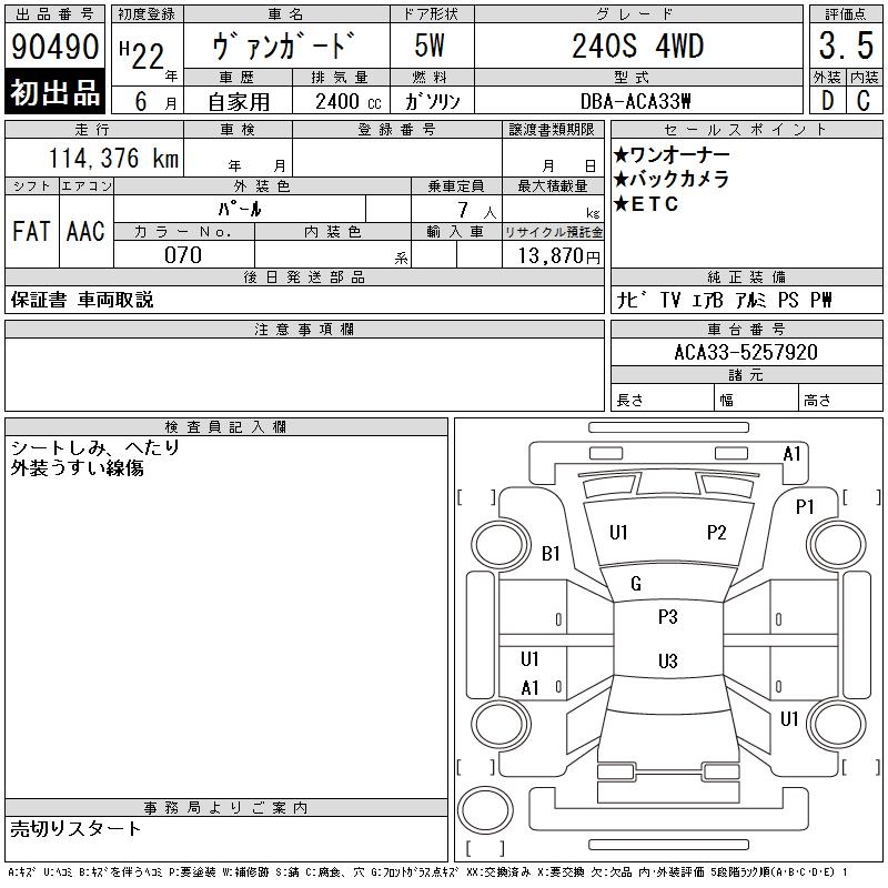 TOYOTA VANGUARD 240S 4WD - лот 90490