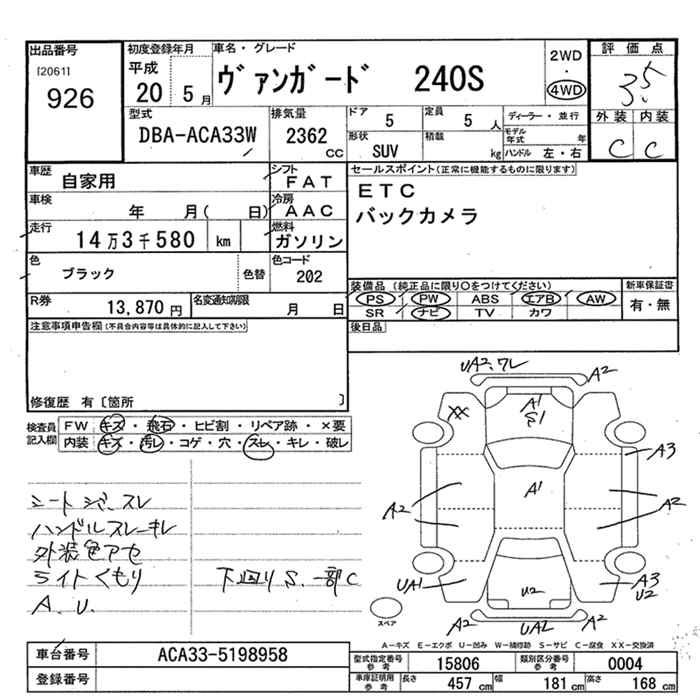 TOYOTA VANGUARD 4WD 240S - лот 926