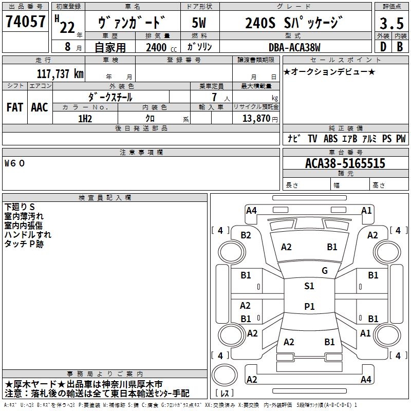 TOYOTA VANGUARD 240S S PACKAGE - лот 74057
