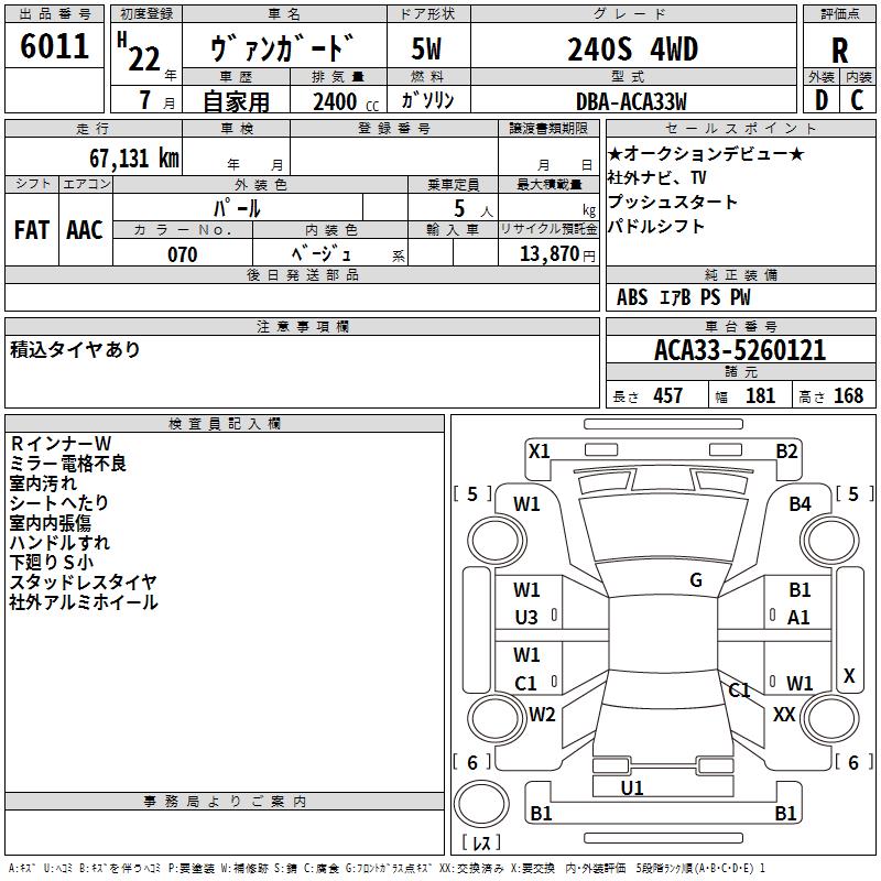 TOYOTA VANGUARD 240S 4WD - лот 6011