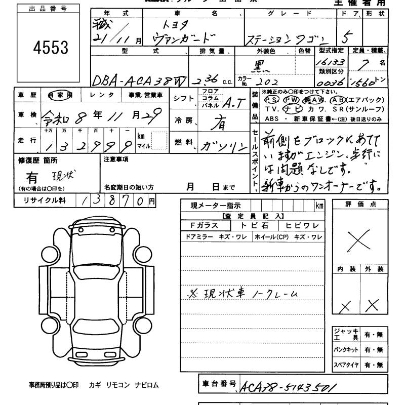 TOYOTA VANGUARD - лот 4553