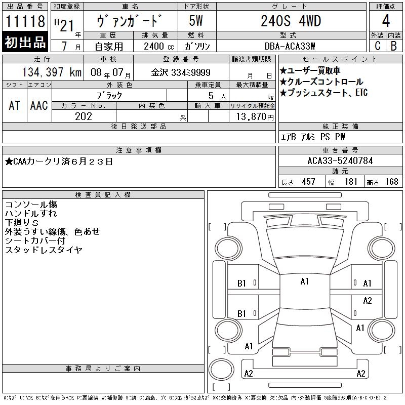 TOYOTA VANGUARD 240S 4WD - лот 11118