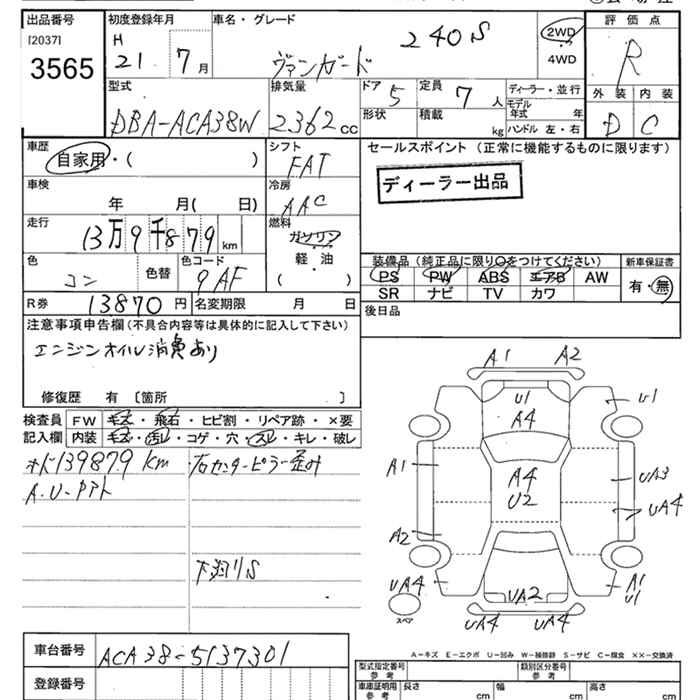 TOYOTA VANGUARD 240S - лот 3565