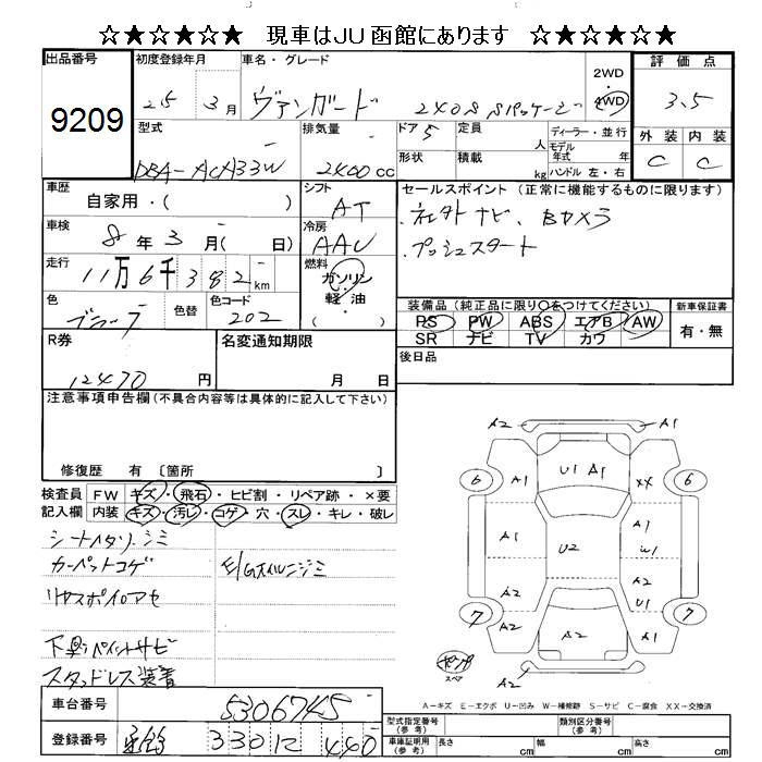 TOYOTA VANGUARD 4WD 240S S PACKAGE - лот 9209