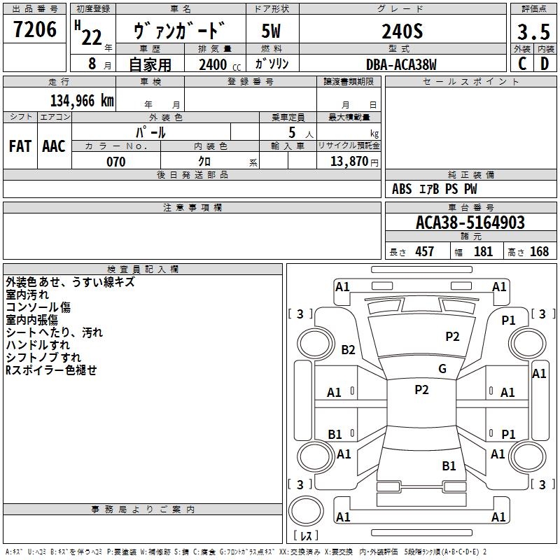 TOYOTA VANGUARD 240S - лот 7206